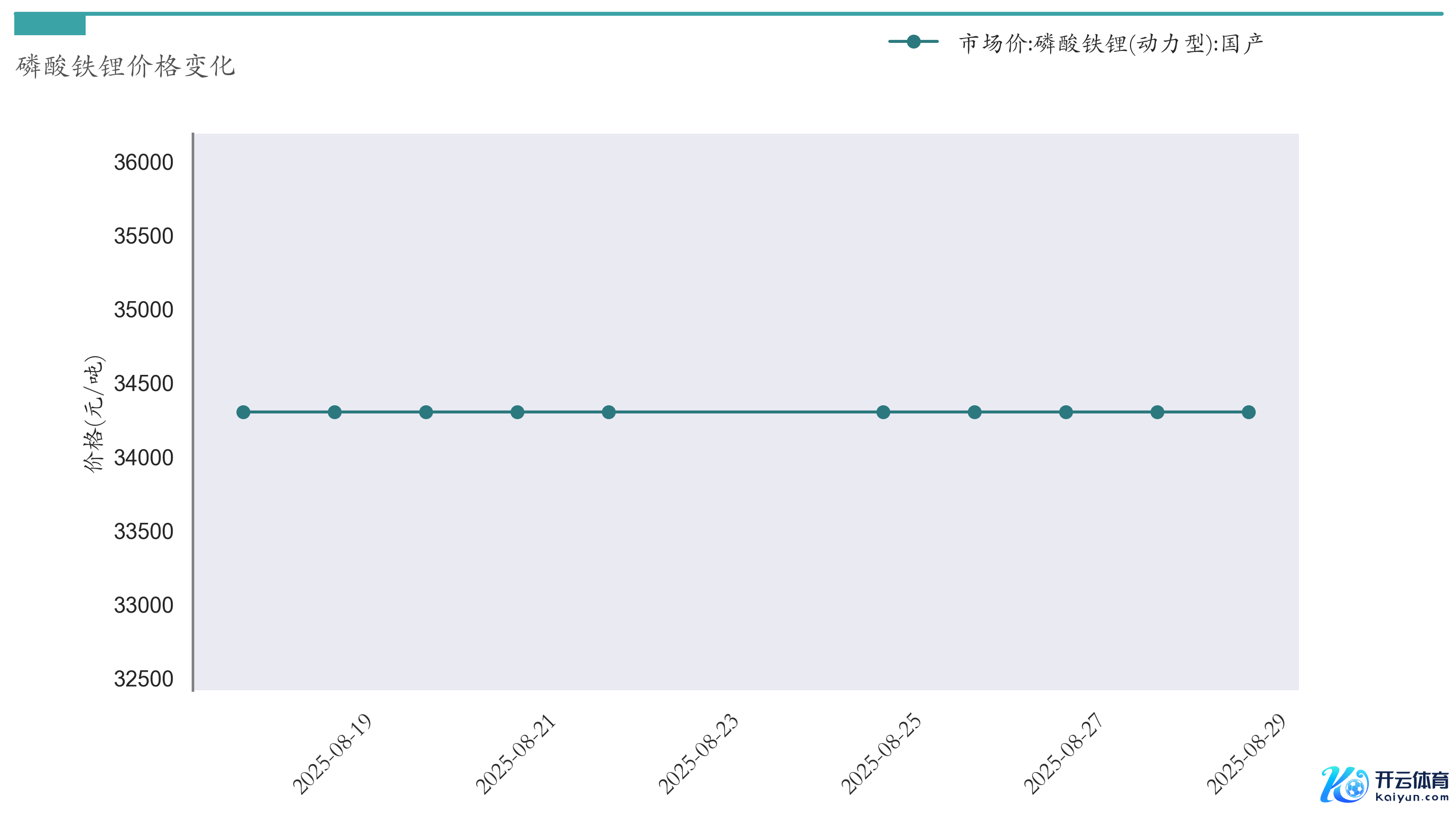 达成8月29日,磷酸铁锂市集报价为34300元/吨,较8月22日握平。近两周磷酸铁锂价钱变化如下图所示: